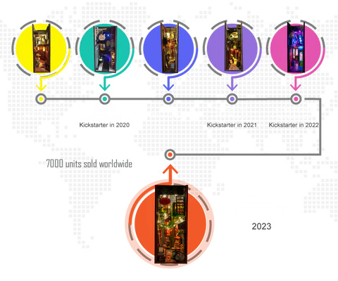 Origin & Legacy Nestled in the heart of Pennsylvania, USA, MiniAlley sprouted as a creative collective with a vision: to design immersive escapes for bibliophiles. Our journey began in 2021, and today, we're proud to have delivered over 7000 unique, enchanting book nook units to customers around the globe. From the inception of our first product to the introduction of our 6th masterpiece - the Dreamy MiniAlley - we've been dedicated to innovation and excellence.